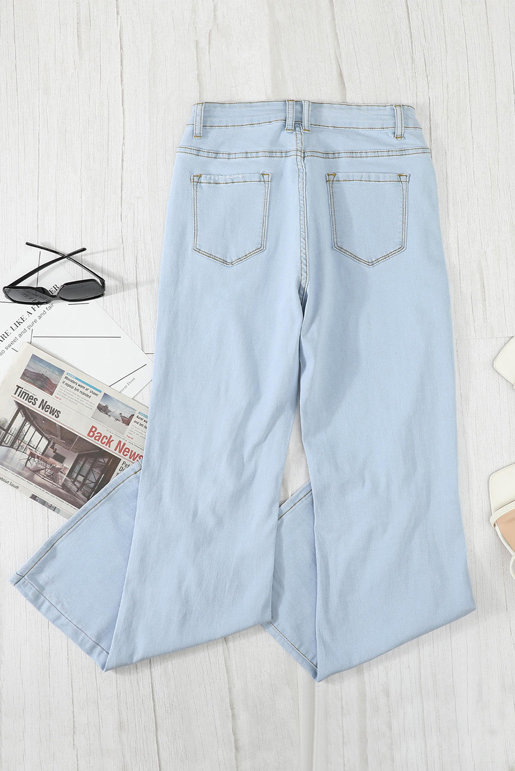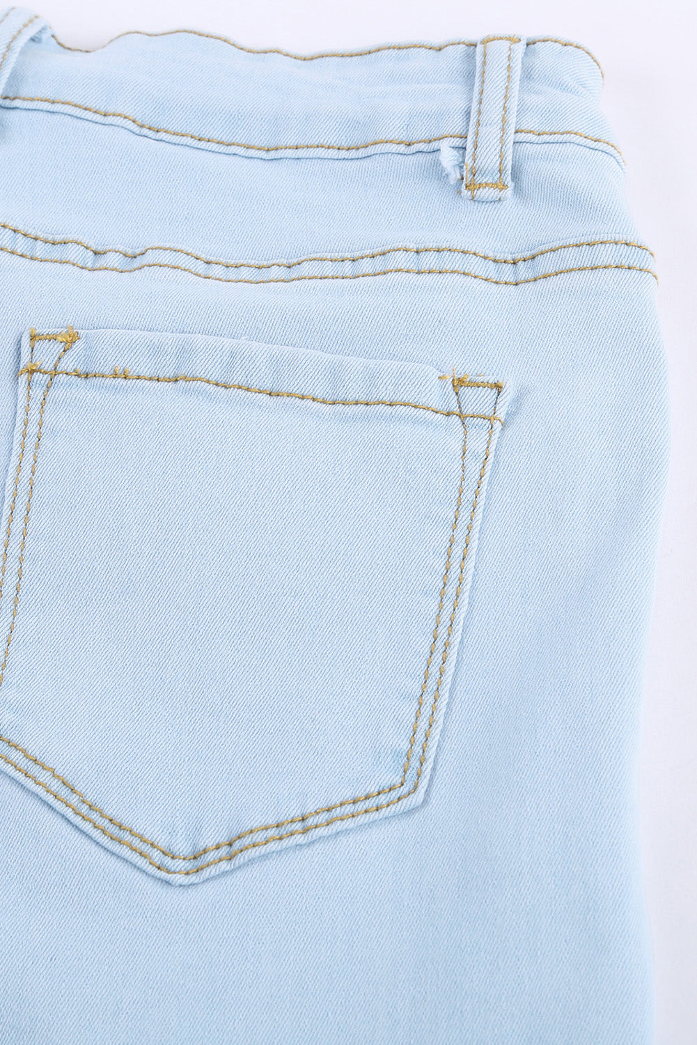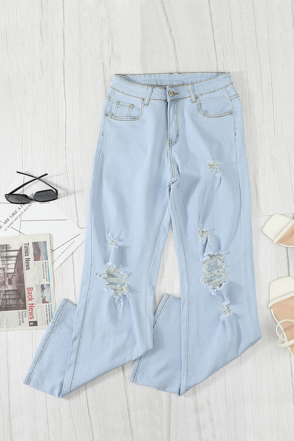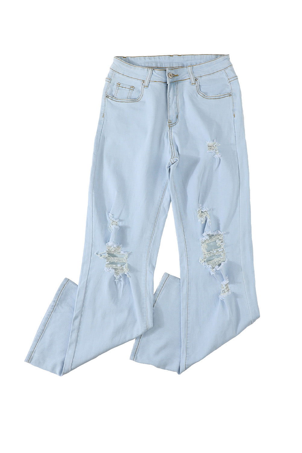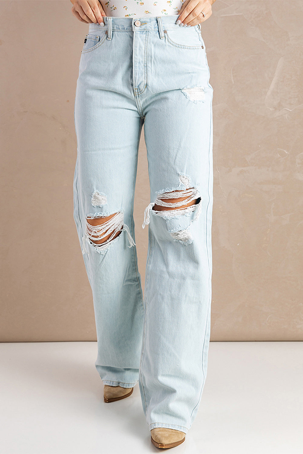 Sky Blue Washed Ripped Knee Wide Legs Jeans