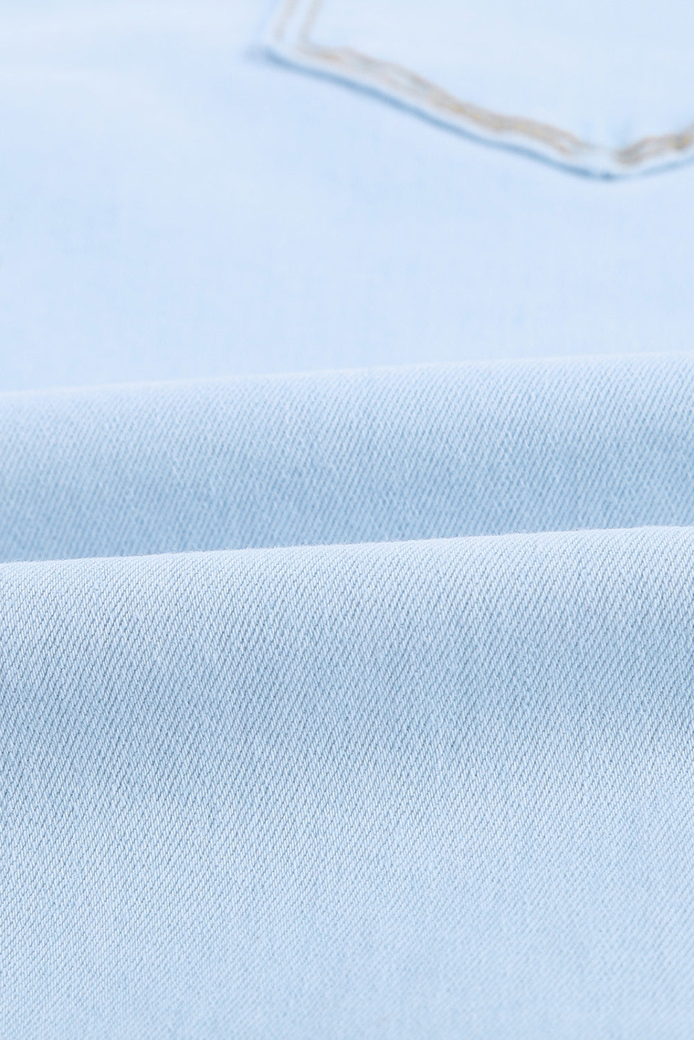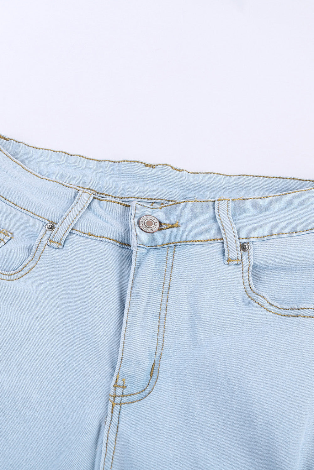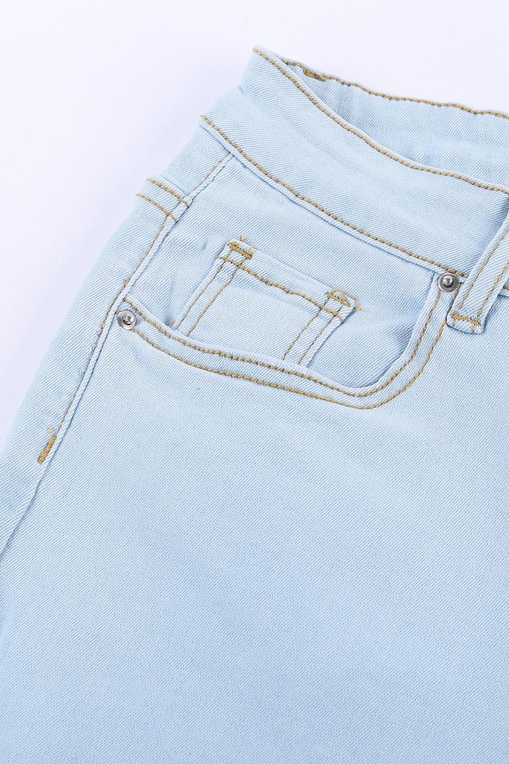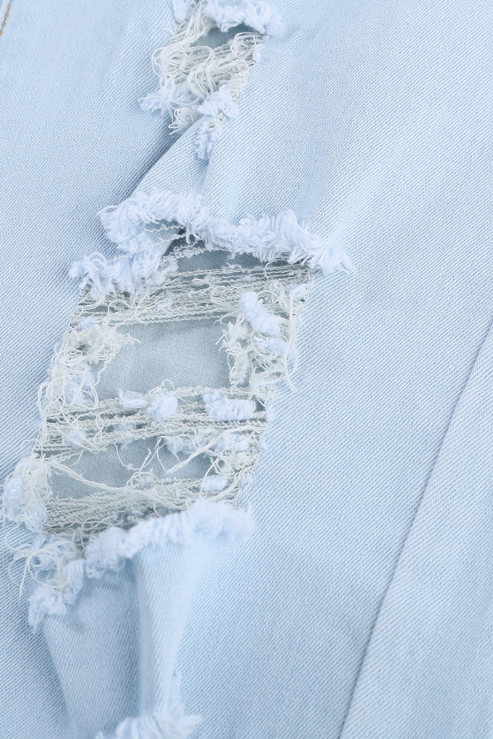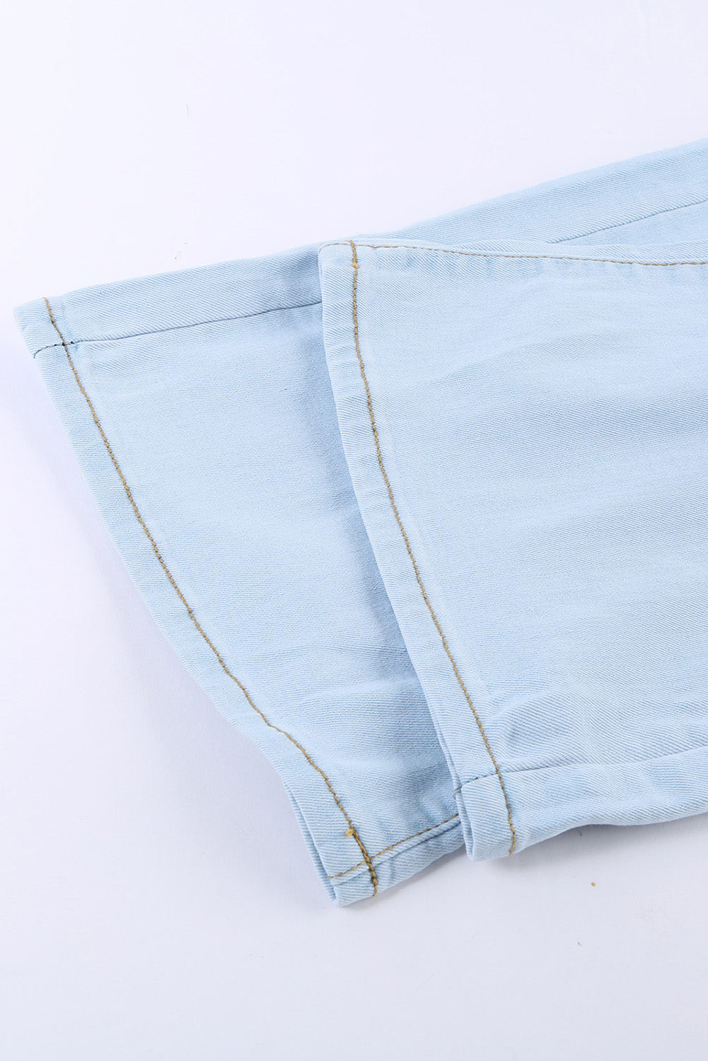 Sky Blue Washed Ripped Knee Wide Legs Jeans
